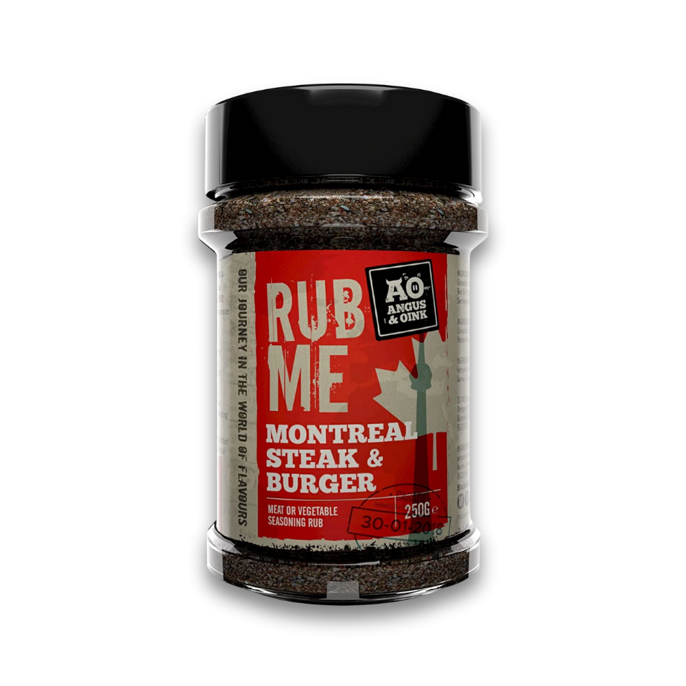 Montreal Steak In Burger – začimba za zrezke, velike zrezke, prave zrezke. Uporabite ga namesto soli. Izjemno dober tudi za pripravo okusnih hamburgerjev, ki jih nato pečete v kamadu. Začimbe dodajte v količini približno 3 % teže mlete govedine (najbolje prsi, pleč in reber) ali pa jih preprosto potresite po vrhu namesto soli. Mešanica začimb je narejena tako, da noben okus ne prevladuje, dober biftek ali burger potrebuje le malo več. Preizkusili smo ga tudi na jagnjetini pod peko – odličen, uporabite ga kjerkoli. Naša trenutno najljubša začimba iz A&O sploh!