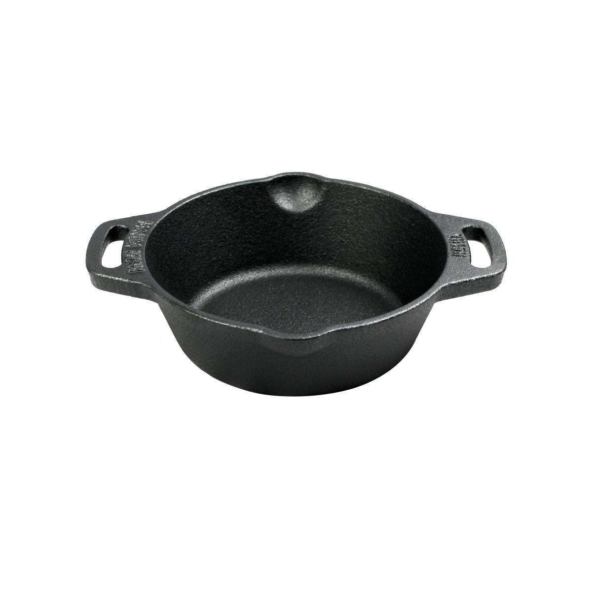 VH15H je kompaktna ponev iz litega železa s premerom 15 cm, zasnovana z dvema praktičnima ročajema za enostavno rokovanje. Kljub manjši velikosti ta ponev ponuja izjemno funkcionalnost in je popolna za pripravo manjših porcij, omak, jajc ali prilog.